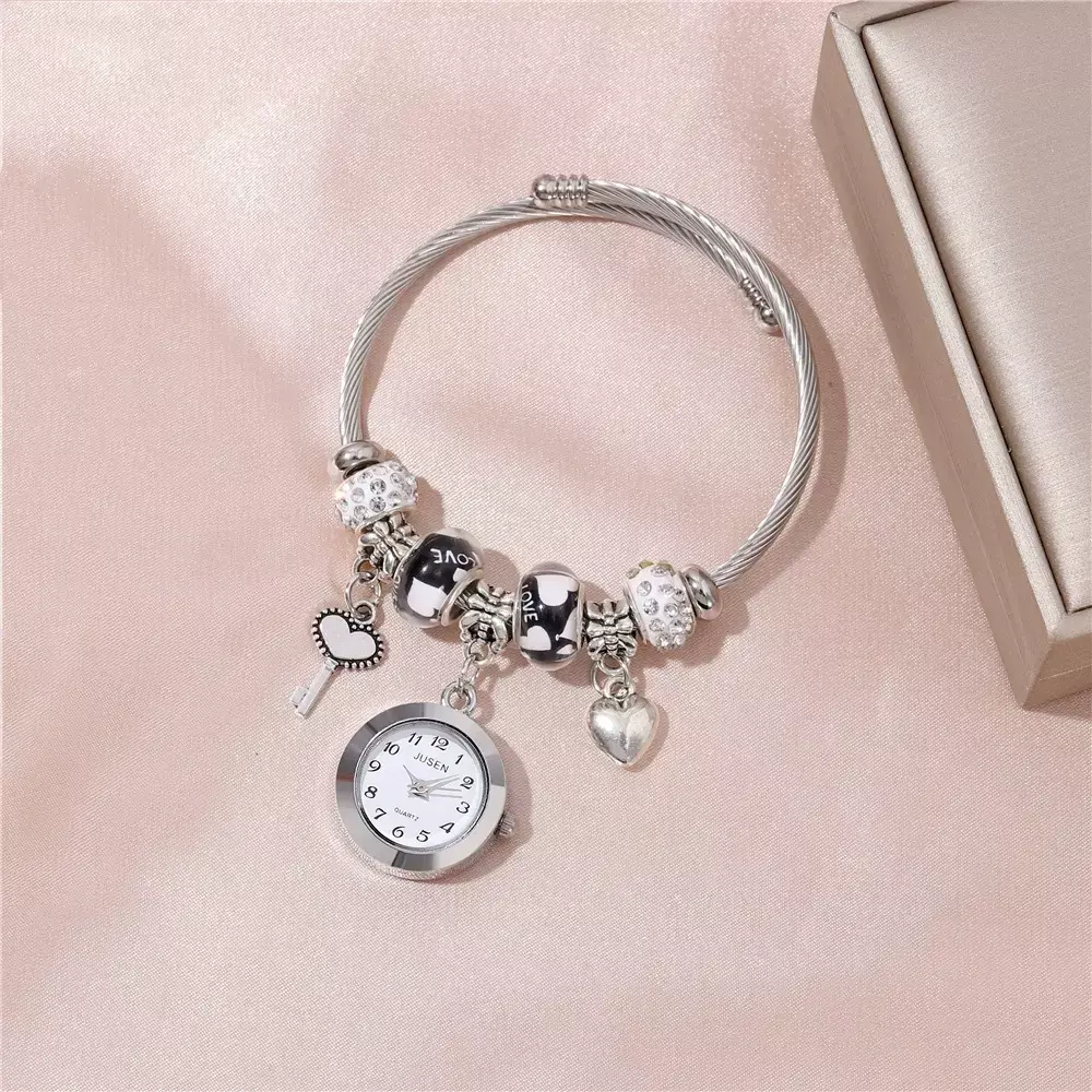 Produzida com materiais de alta qualidade, a Pulseira com Pingente Relógio, Chave e Coração oferece resistência, durabilidade e conforto no uso diário. Seu design ajustável garante que ela se adapte a diferentes tamanhos de pulso, proporcionando praticidade e segurança.